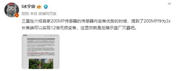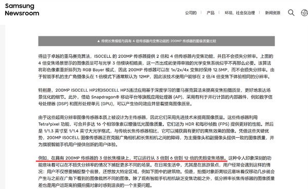 【手机中国新闻】近日,有数码博主注意到,三星在介绍自家200MP传感器的传感器内变焦优势的时候,提到了200MP作为3x长焦端可以实现12倍无损变焦,这显然是在暗示vivo X100 Pro灭霸机型将支持12倍无损变焦。