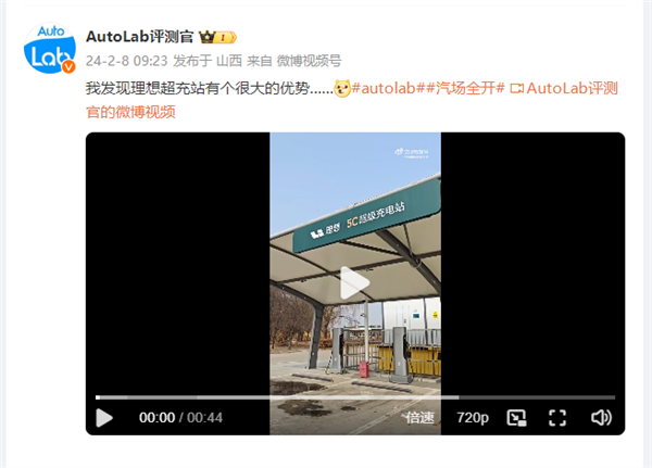 快科技2月8日消息,今日,有博主发了一段有关理想5C超充站充电桩便携使用的微博视频。