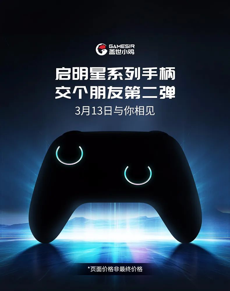 IT之家 3 月 5 日消息,小鸡游戏官微宣布:盖世小鸡“启明星”系列手柄新品将于 3 月 13 日发售。