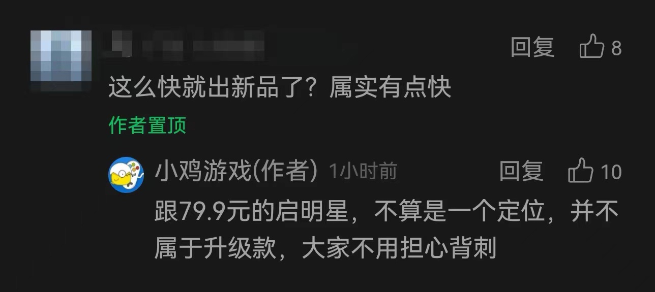 此次推出的新品,虽然属于启明星系列,但是跟 79.9 元的启明星不属于同一定位,不是盖世小鸡启明星手柄的升级款,老用户不用担心背刺;