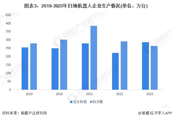 从中国扫地机器人企业代表性相关产品生产情况来看,2019-2023年,中国扫地机器人产量呈现波动变化态势,扫地机器人厂商产量水平整体趋于稳定。